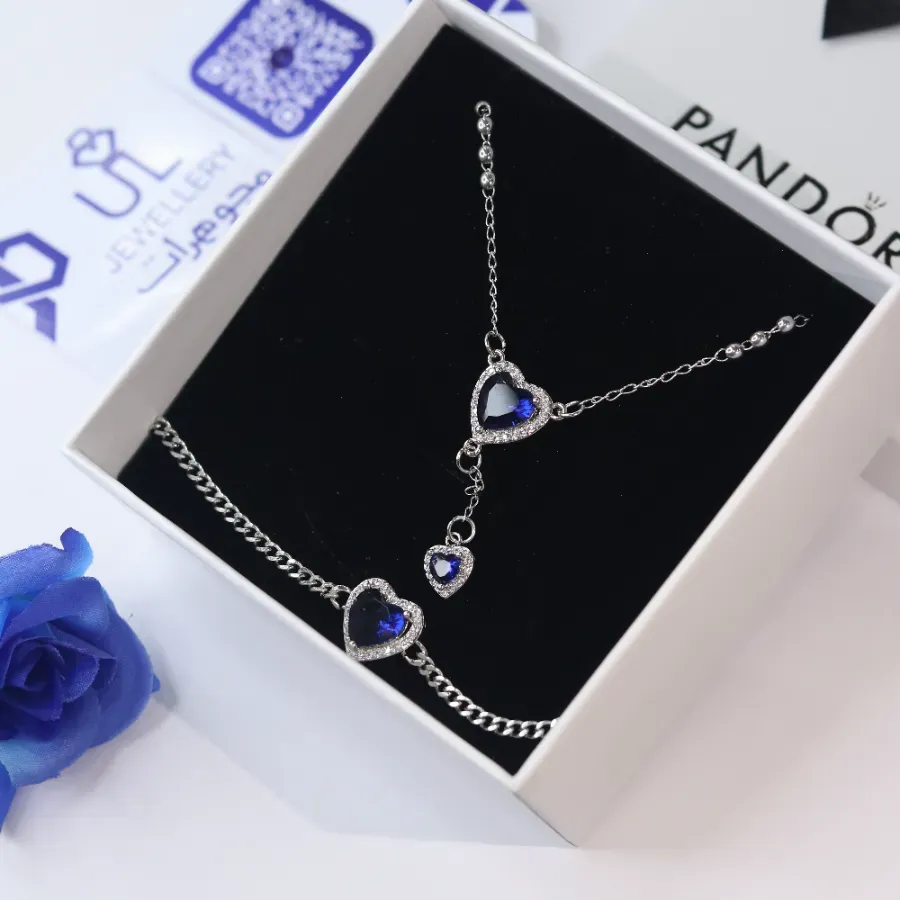 استمتعي بتألق فريد مع طقم باندورا ستانلس ستيل باللون الأزرق الذي يجسد الأناقة العصرية بروح راقية.