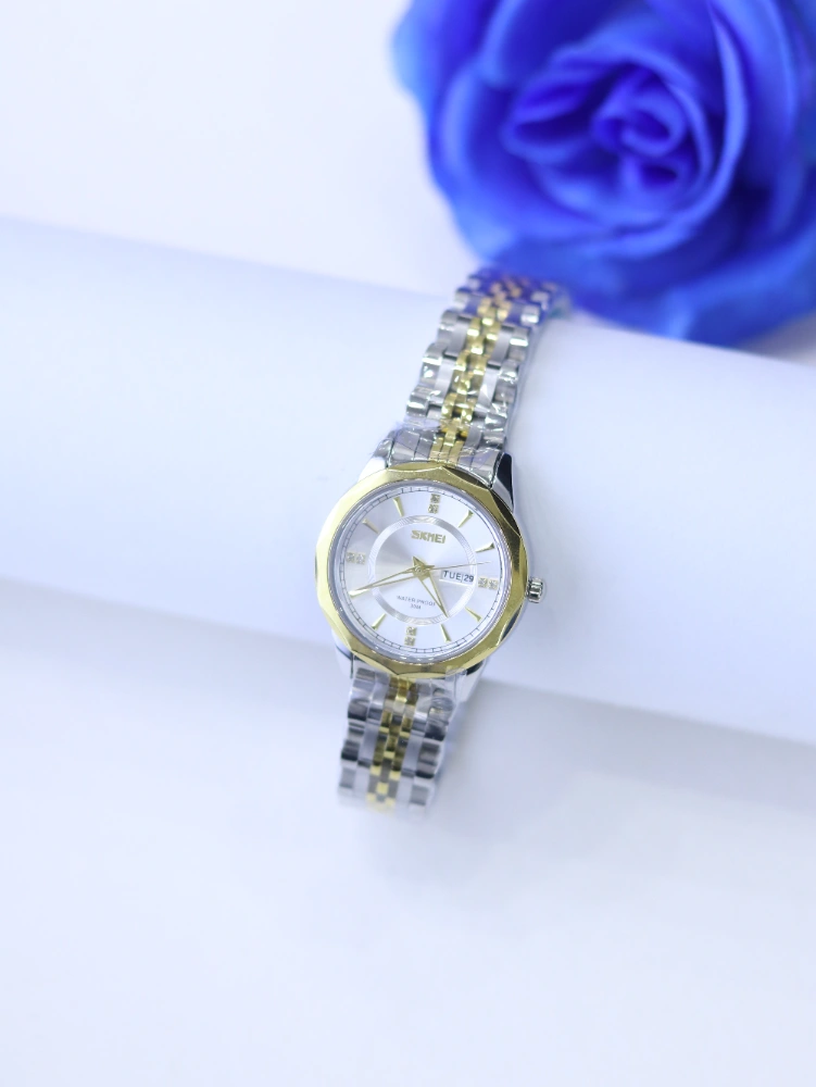 تميّزي بالأناقة الكلاسيكية مع ساعة SKMEI النسائية – لونين ذهبي وفضي، التي تجمع بين التصميم الراقي والفخامة العملية في كل تفصيلة.